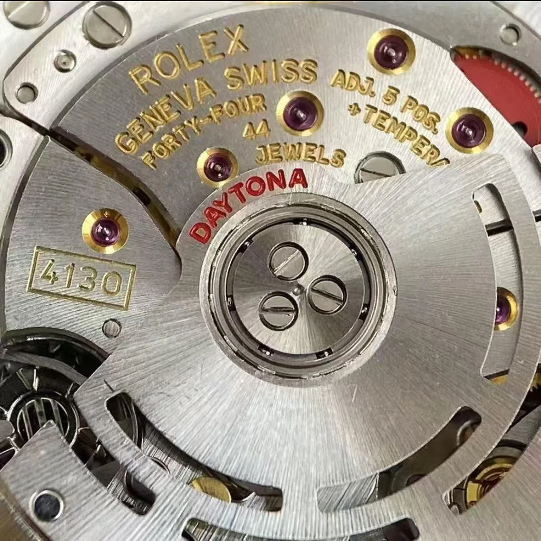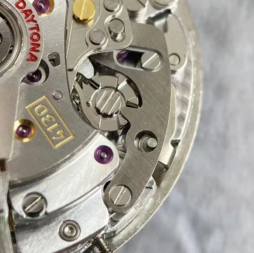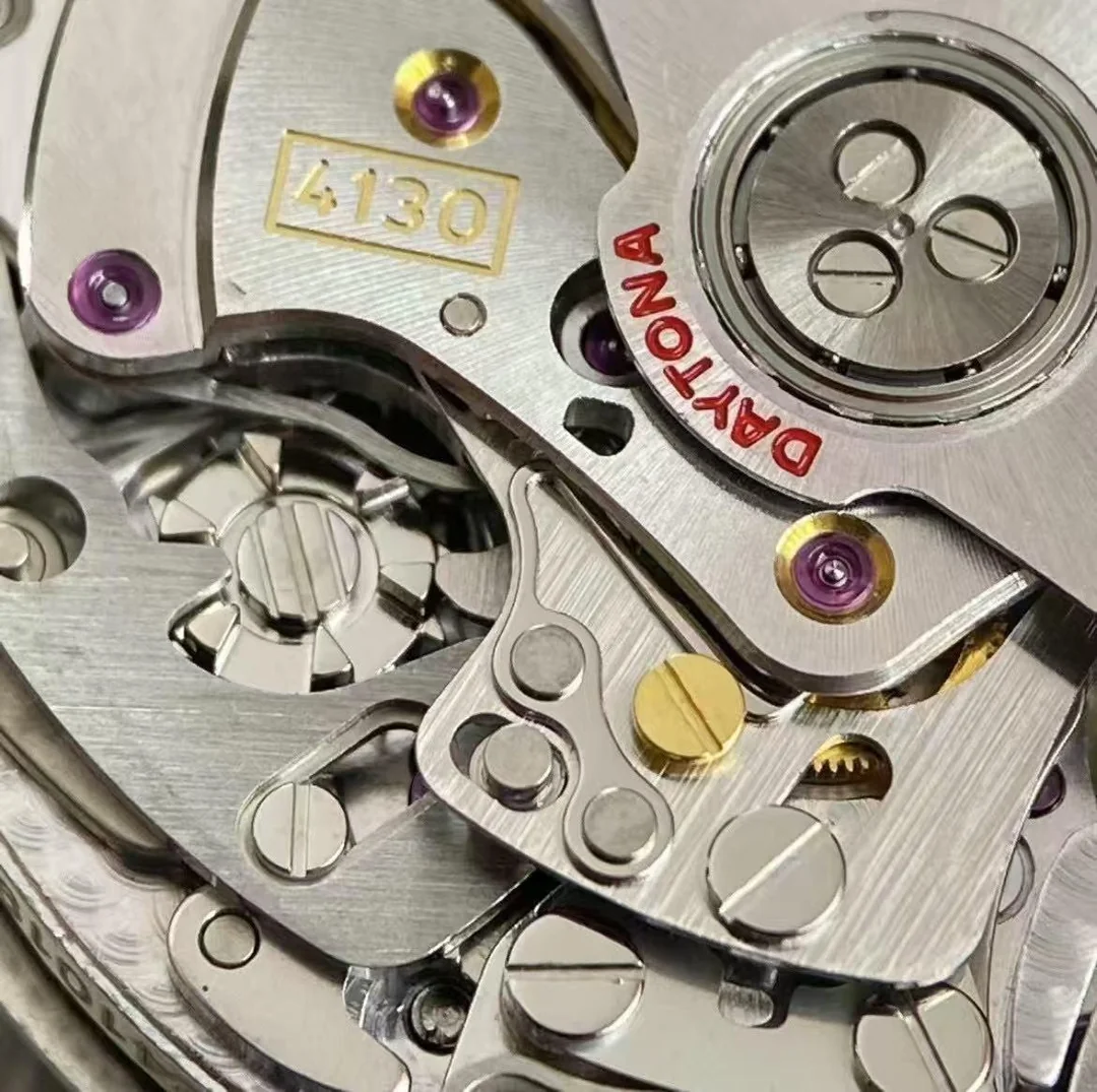 Чтобы понять масштаб события, нужно вспомнить прошлое. Ранние реплики Daytona использовали механизмы на базе популярной платформы 7750. Сама по себе эта платформа была вполне надежной и проверенной временем, но для хронографов Daytona требовалась иная компоновка. Механизмы 7750 имели высоту около 7.9 мм, из-за чего корпуса реплик получались толстыми — до 14.5 мм, тогда как оригинальная Daytona всегда славилась своим изящным профилем. Появление качественной версии 4130 с высотой механизма всего 6.5 мм стало настоящим прорывом. Именно этот тонкий калибр позволил уменьшить толщину корпуса реплик до 12.2 мм — в точности как у оригинала. Вдобавок 4130 получил полноценный двусторонний завод ротора, запас хода 70 часов и тихую, плавную работу. Все это вывело реплики Daytona на принципиально новый уровень, приблизив их к оригиналу по всем ключевым параметрам.