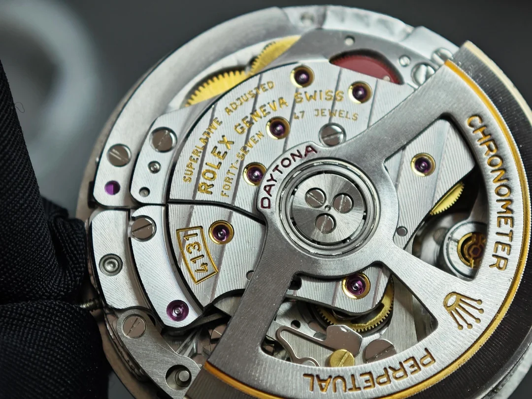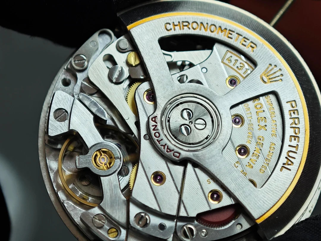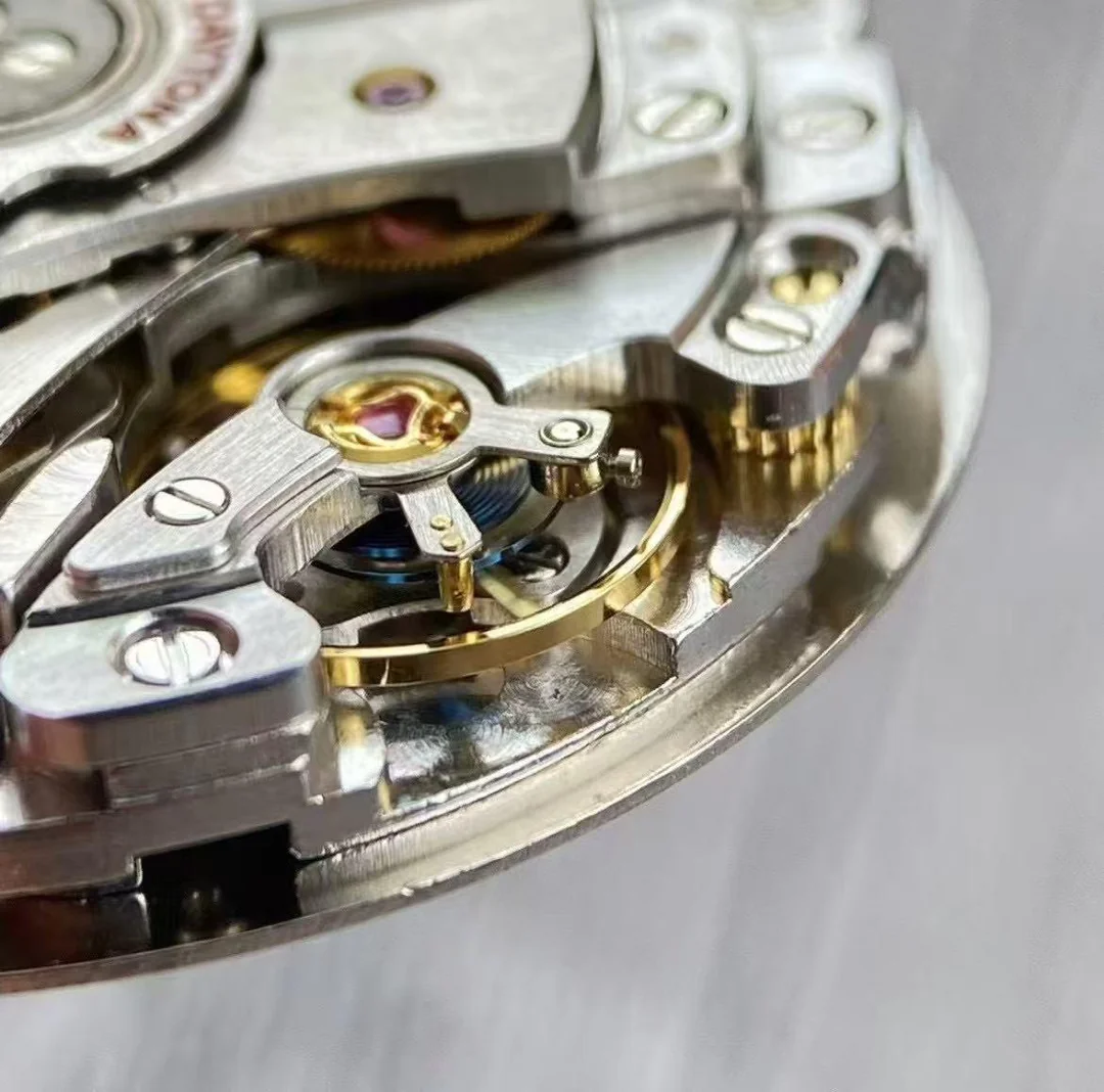 Чтобы понять масштаб события, нужно вспомнить прошлое. Ранние реплики Daytona использовали механизмы на базе популярной платформы 7750. Сама по себе эта платформа была вполне надежной и проверенной временем, но для хронографов Daytona требовалась иная компоновка. Механизмы 7750 имели высоту около 7.9 мм, из-за чего корпуса реплик получались толстыми — до 14.5 мм, тогда как оригинальная Daytona всегда славилась своим изящным профилем. Появление качественной версии 4130 с высотой механизма всего 6.5 мм стало настоящим прорывом. Именно этот тонкий калибр позволил уменьшить толщину корпуса реплик до 12.2 мм — в точности как у оригинала. Вдобавок 4130 получил полноценный двусторонний завод ротора, запас хода 70 часов и тихую, плавную работу. Все это вывело реплики Daytona на принципиально новый уровень, приблизив их к оригиналу по всем ключевым параметрам.