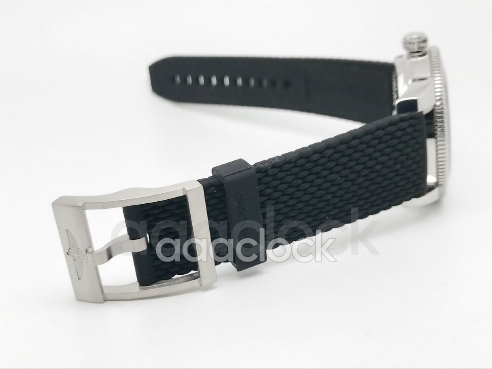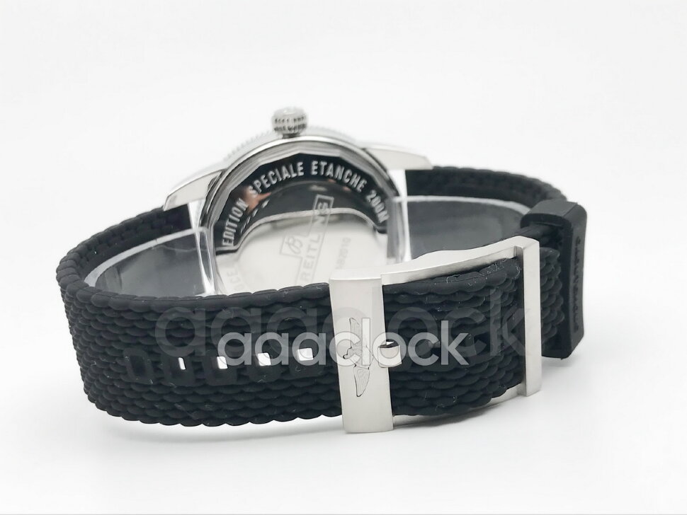 В корпус диаметром 42 мм установлен калибр - ETA 2824, известный своей точностью и впечатляющим запасом хода 42 часа. Механизм обеспечивает высокую точность хода, не уступающую оригинальным часам Breitling. В механизме реализованы следующие функции: часы, минуты, секунды (центральная секундная и часовая стрелки со стоп-функцией), дата. Благодаря водонепроницаемости 10 АТМ часы не боятся нахождения в воде. В комплекте с часами Breitling поставляется высококачественный стальной браслет миланского плетения, с двойной раскладывающейся застежкой Breitling.