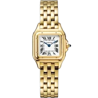 Cartier Panthere Secrete Ladies WGPN0016 - это роскошные часы из коллекции Panthere Secrete, созданные Cartier и изготовленные в соответствии с высочайшими стандартами качества. Циферблат белый. Полированные римские часовые индексы и вороненные мечевидные стрелки. Разграниченная секундная шкала по малому радиусу циферблата.. Дополняет образ фиксированный в одном положении позолоченный полированный безель покрытый жёлтым золотом методом pvd.